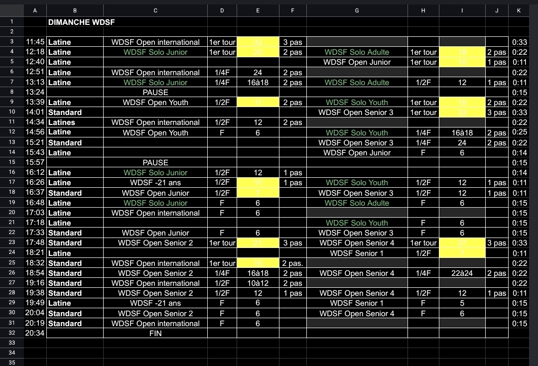 début des compétitions 11h00
